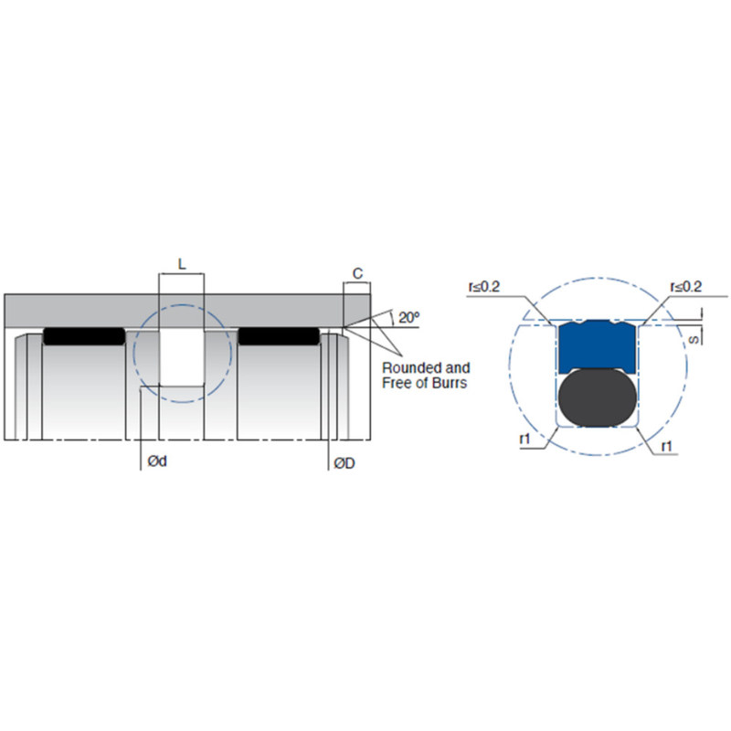 D (H9) d (h9) L (+0,2/-0) r1 C O-Ring Materiał